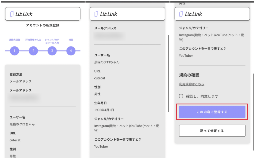 リットリンク(lit.link)の登録にはメールアドレスで登録する方法とLINEに連携させて登録する2種類の方法があります。