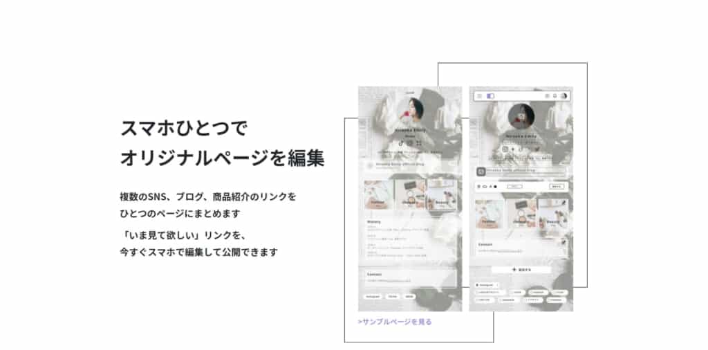 リットリンク(lit.link)とは、インスタグラム(Instagram)やツイッター(Twitter)、ブログなど自身が運用する複数のメディアのリンクを一つのページにお洒落で自分好みにデザインできる『リンクまとめサービス』です。